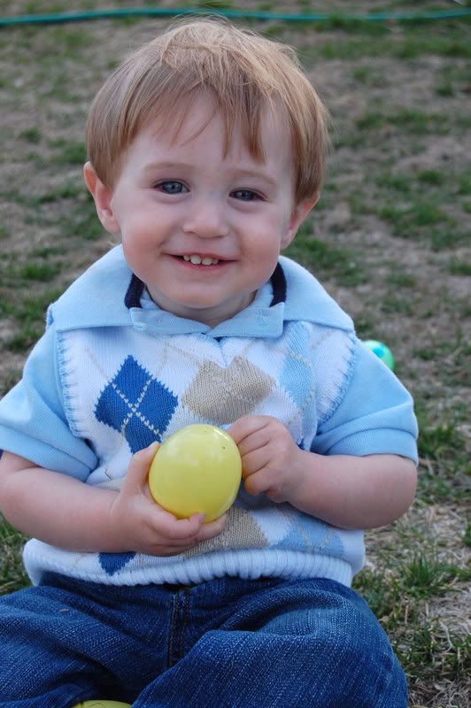 After dinner we had an Easter egg hunt, kind of. Nolan isn't walking yet so we just set him down in the grass and let him at the eggs. He had so much fun! I can't wait to see what next Easter is like!